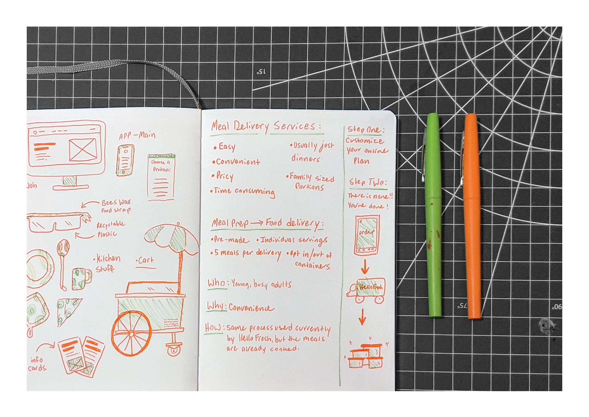 College Design Project: One Step Meal Prep was a proposed campaign for meal delivery service Hello Fresh. Aimed toward busy young adults, One Step removes the hassle of cooking and preparing meals by expanding on Hello Fresh's already successful business model. Simply download the app, determine your meal preferences, and a week’s worth of healthy, fresh, delicious meals are headed to your door. One Step maintains the natural and organic goals of Hello Fresh, using sustainable packaging materials and handmade, unique products.